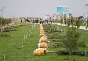 Іс-шара аясында қаланы көгалдандыру және экологиялық ахуалды жақсарту мақсатында жаппай ағаш егу жұмыстары жүргізілді. Нәтижесінде бір күнде 1200 түп Қырым қарағайы мен 1000 түп жапырақты ағаш егілді. Осылайша, жалпы саны 2200 ағаш көшеті егіліп, Түркістанға кіреберістегі жасыл белдеу айтарлықтай толықты. Болашақта бұл аумақ саялы баққа айналмақ.